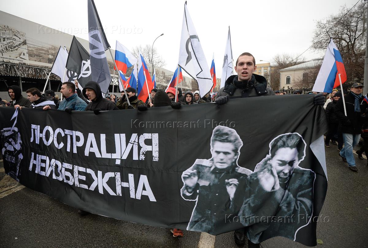 Траурный марш в связи в память о сопредседателе политической партии "РПР-ПАРНАС" Борисе Немцове, который был застрелен в ночь с пятницы на субботу на Большом Москворецком мосту. от метро "Китай-город" до Большого Москворецкого моста.