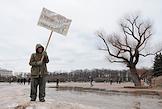 Траурный марш в память о сопредседателе политической партии "РПР-ПАРНАС" Борисе Немцове, который был застрелен в ночь с пятницы на субботу на Большом Москворецком мосту в Москве. Участники марша прошли от станции метро "Горьковская" до Марсова поля. Эмблема на рукаве куртки с надписью "Вежливые люди".