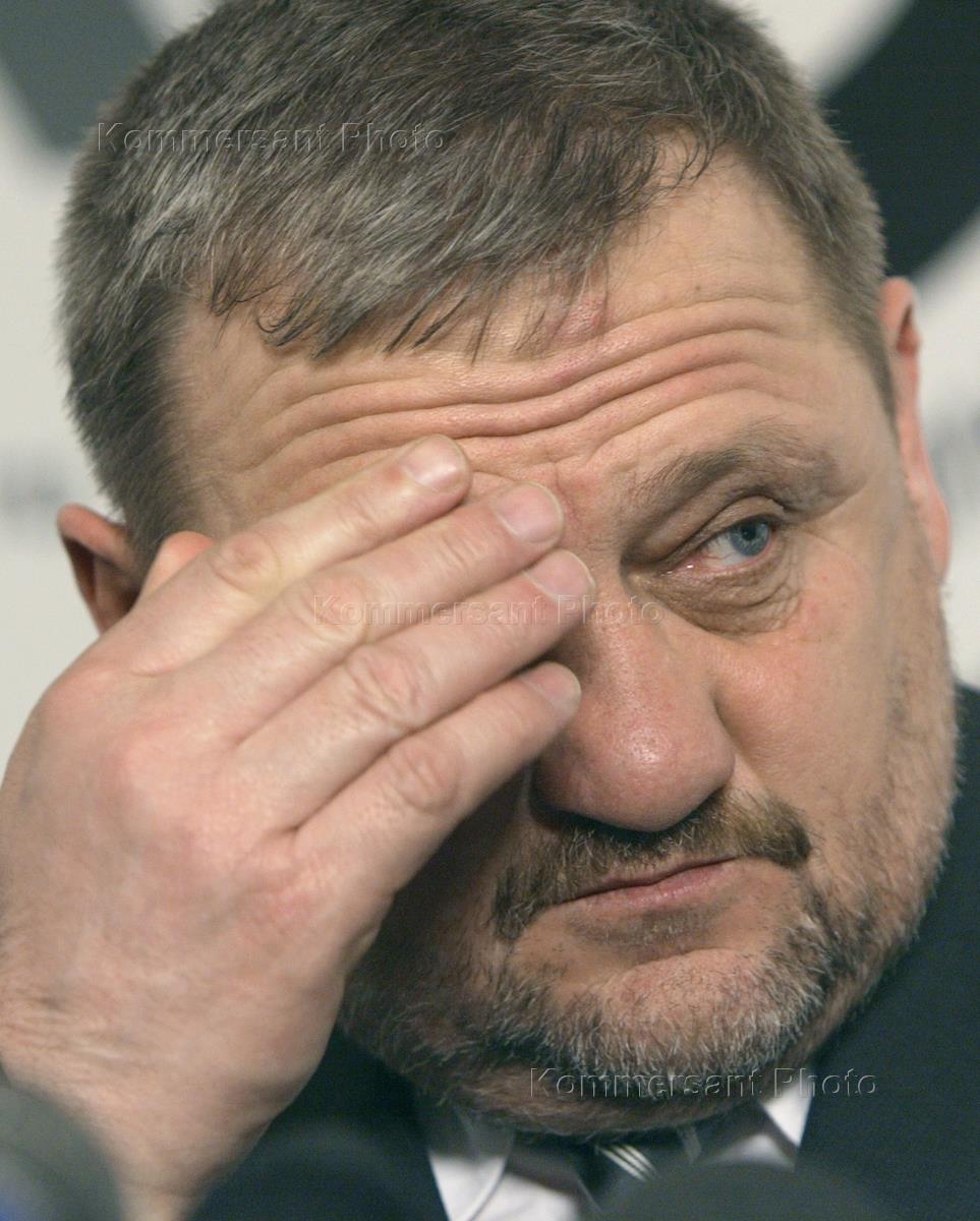 Head of the Chechen Republic transitional administration Ahmat Kadyrov is interviewed at the news conference on the results of the constitutional referendum in Chechnya. The news conference was broadcast live by the 'Echo of Moscow' radio station.