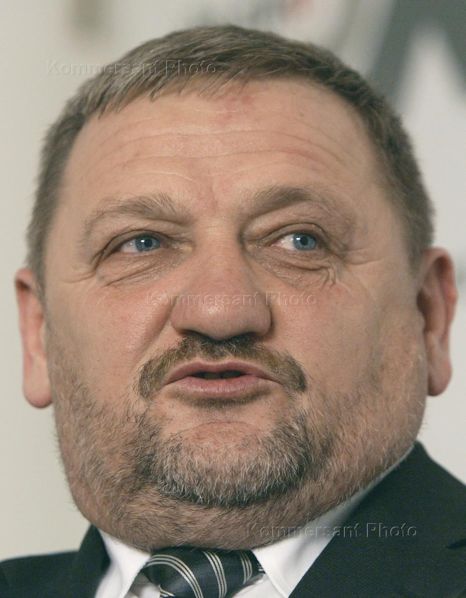 Head of the Chechen Republic transitional administration Ahmat Kadyrov is interviewed at the news conference on the results of the constitutional referendum in Chechnya. The news conference was broadcast live by the 'Echo of Moscow' radio station.