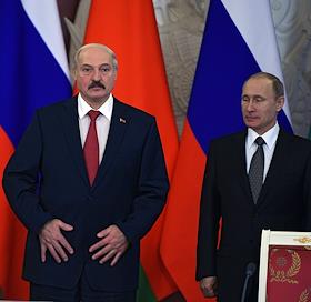 Президент Белоруссии Александр Лукашенко (слева) и президент России Владимир Путин (справа) во время встречи.