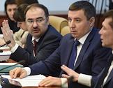 Министр труда и социальной защиты России Максим Топилин (слева) и заместитель министра труда и социальной защиты России Алексей Вовченко (справа) во время расширенного заседания комитета Совета федерации по социальной политике.