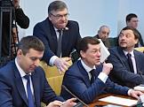Представитель в Совете Федерации России от законодательной власти Курской области Валерий Рязанский (слева) и председатель правления Пенсионного фонда России Антон Дроздов (справа) во время расширенного заседания комитета Совета федерации по социальной политике.