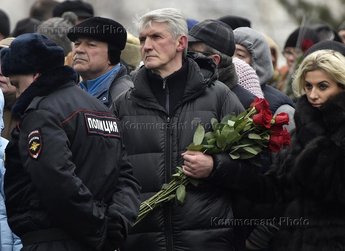 Похороны сопредседателя партии "РПР-Парнас" Бориса Немцова на Троекуровском кладбище. Бывший глава МФО "Менатеп" Платон Лебедев во время похорон.