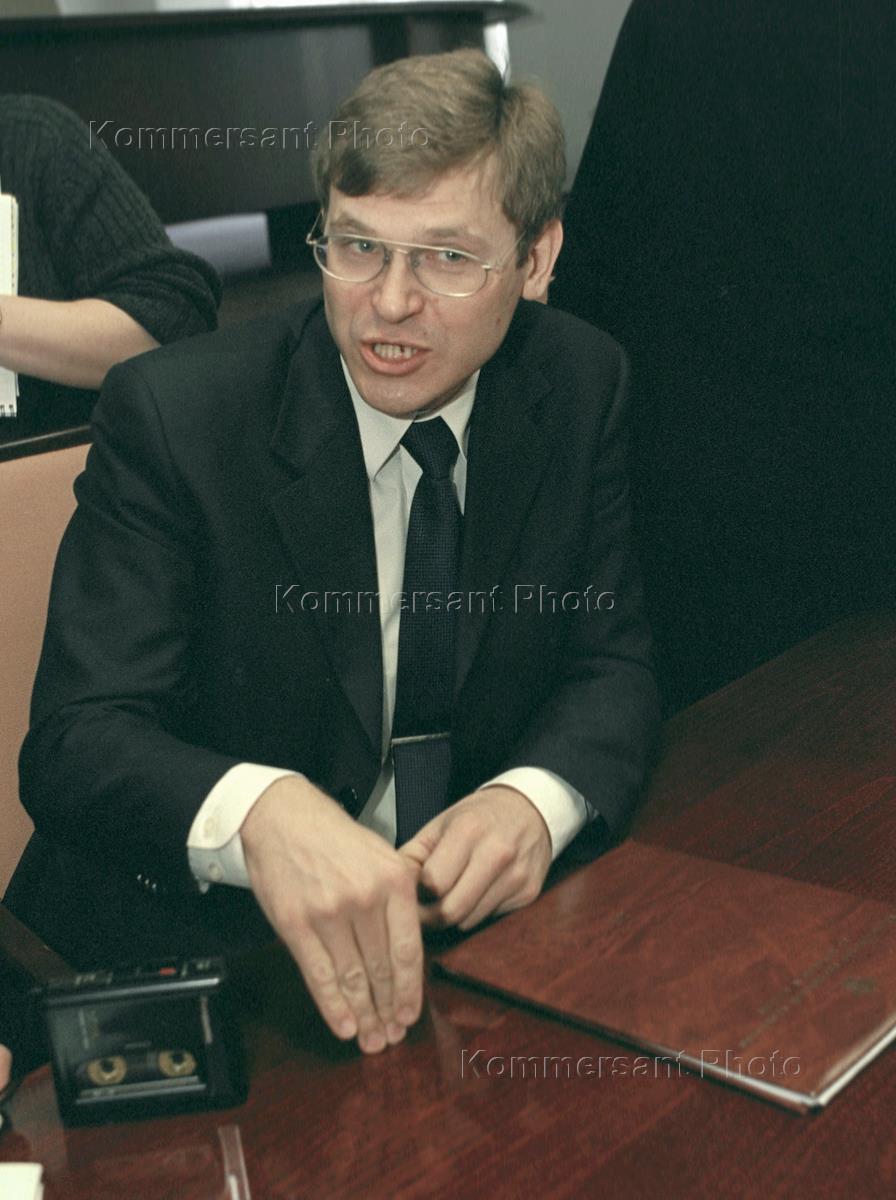 Head of the Russian Tax and Revenue Ministry (MNS) natural resource tax department Andrey Fedorov is interviewed at the news conference headlined 'Results and Prospects of Natural Resource Taxation'. The news conference was held in the MNS headquarters.