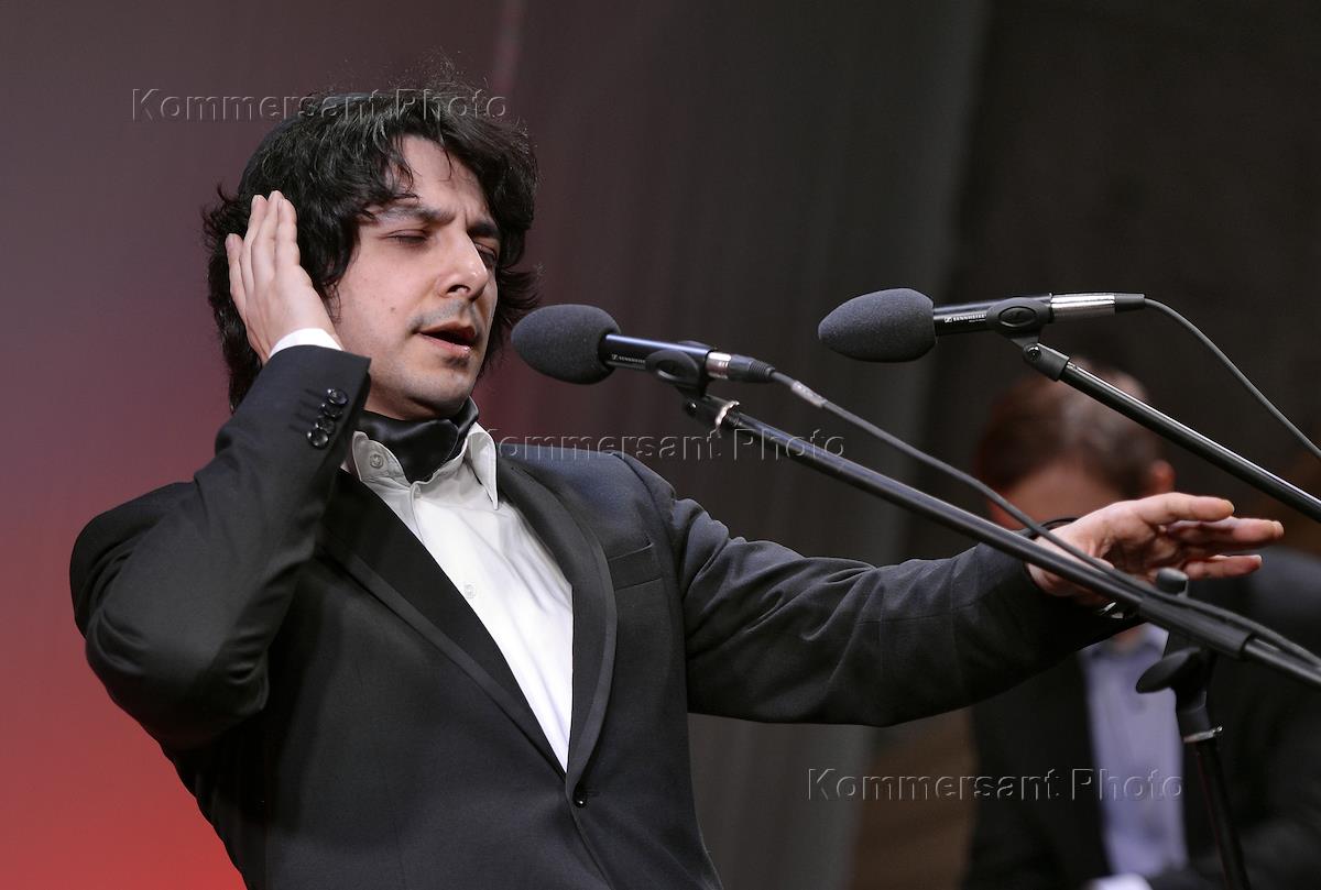 Музыкант Фельван Гожевский во время выступления на праздничном приеме, посвященном Пуриму - празднику в память о чудесном спасении евреев в Персидском царстве. Праздник прошел в башне "Империя" в бизнес-центре "Москва-Сити".