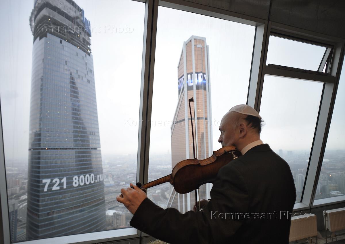 Праздничный прием, посвященный Пуриму - празднику в память о чудесном спасении евреев в Персидском царстве. Праздник прошел в башне "Империя" в бизнес-центре "Москва-Сити". Вид на Москву из башни "Империя".