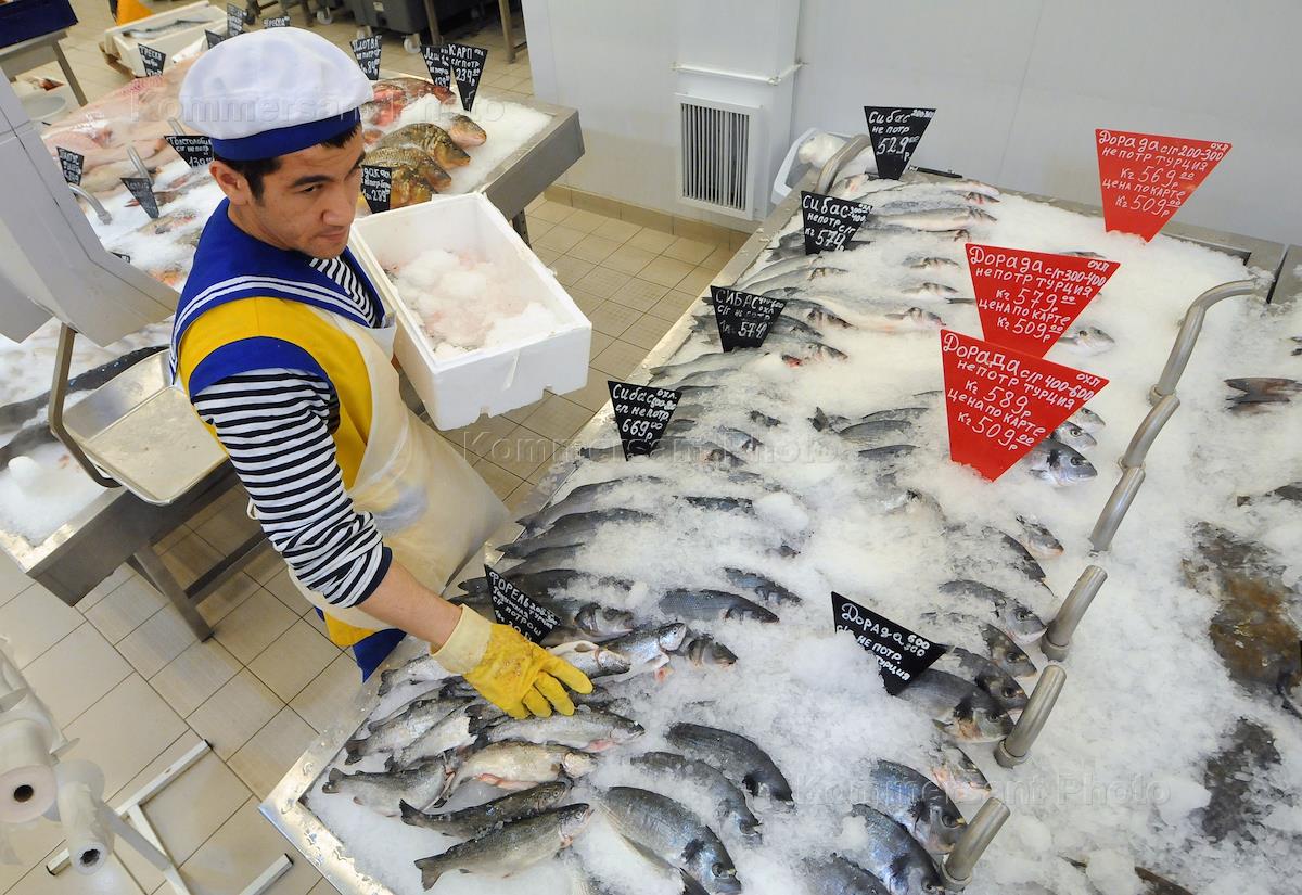 Гипермаркет О'КЕЙ на Богатырском проспекте. Продавец в рыбном отделе.