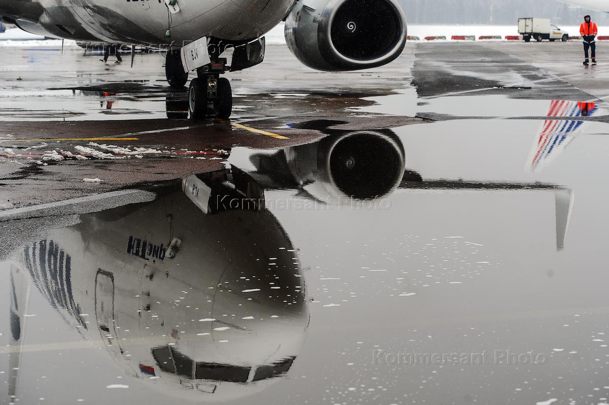 Жанровая фотография. Самолет компании на летном поле аэропорта Внуково.