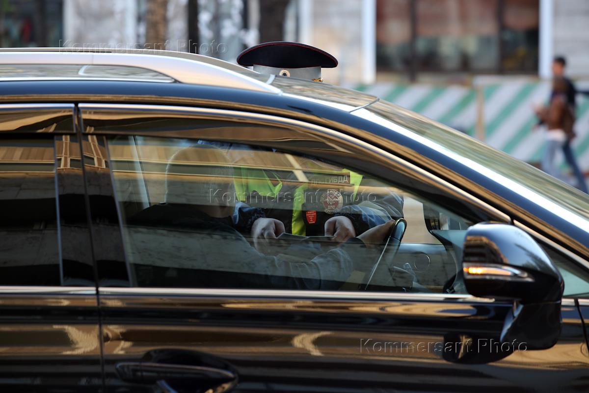 Views of Moscow during a snowfall. Genre photography. A man on a moped rides on a road.