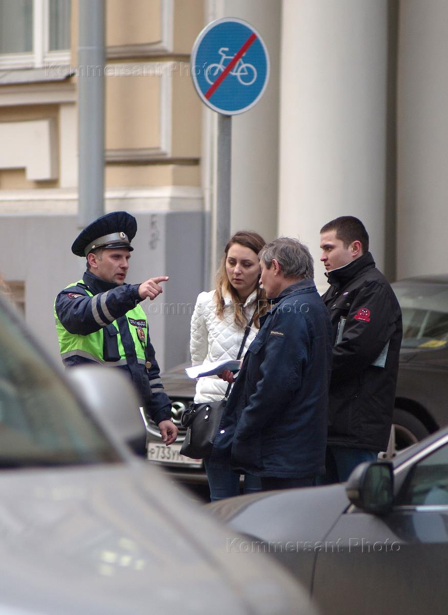 Views of Moscow during a snowfall. Genre photography. Residents of the house during the snow removal in the yard.
