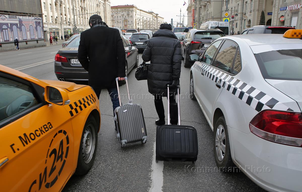 Views of Moscow during a snowfall. Genre photography. Snow removal equipment during snow removal.