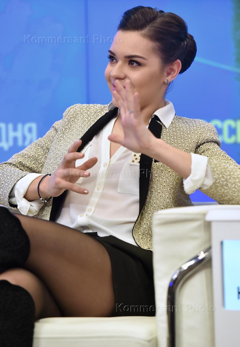 Фигуристка, олимпийская чемпионка Аделина Сотникова во время пресс-кофнеренции с представлением официальной символики Всероссийского физкультурно-спортивного комплекса "Готов к труду и обороне" (ГТО). Пресс-конференция прошла в пресс-центре "Россия сегодня".