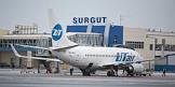Виды Сургута. Аэропорт города Сургут. Самолет авиакомпании UTair (Ю-Тейр) на взлетном поле аэропорта.
