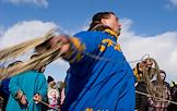 Виды Сургута. Ежегодный праздник "День оленевода". Cоревнования по езде на оленьих упряжках. Участники перед стартом.
