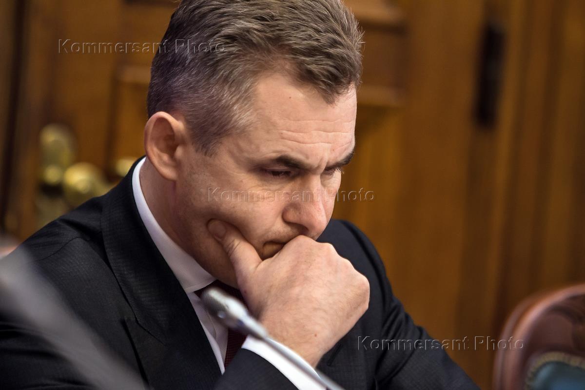 Губернатор Калининградской области Николай Цуканов во время встречи уполномоченного при президенте России по правам ребенка Павла Астахава с членами правительства Калининградской области.