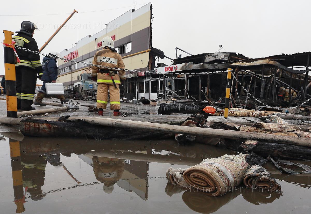 Workers of fire-fighting emergency of the Ministry of Emergency Situations during debris removal in shopping centre 'Admiral'.