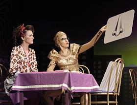 Спектакль "Женитьба", режиссера Филиппа Григорьяна прошел на сцене театра "Наций". Телеведущая Ксения Собчак (слева) и актриса Анна Уколова (справа) во время спектакля.