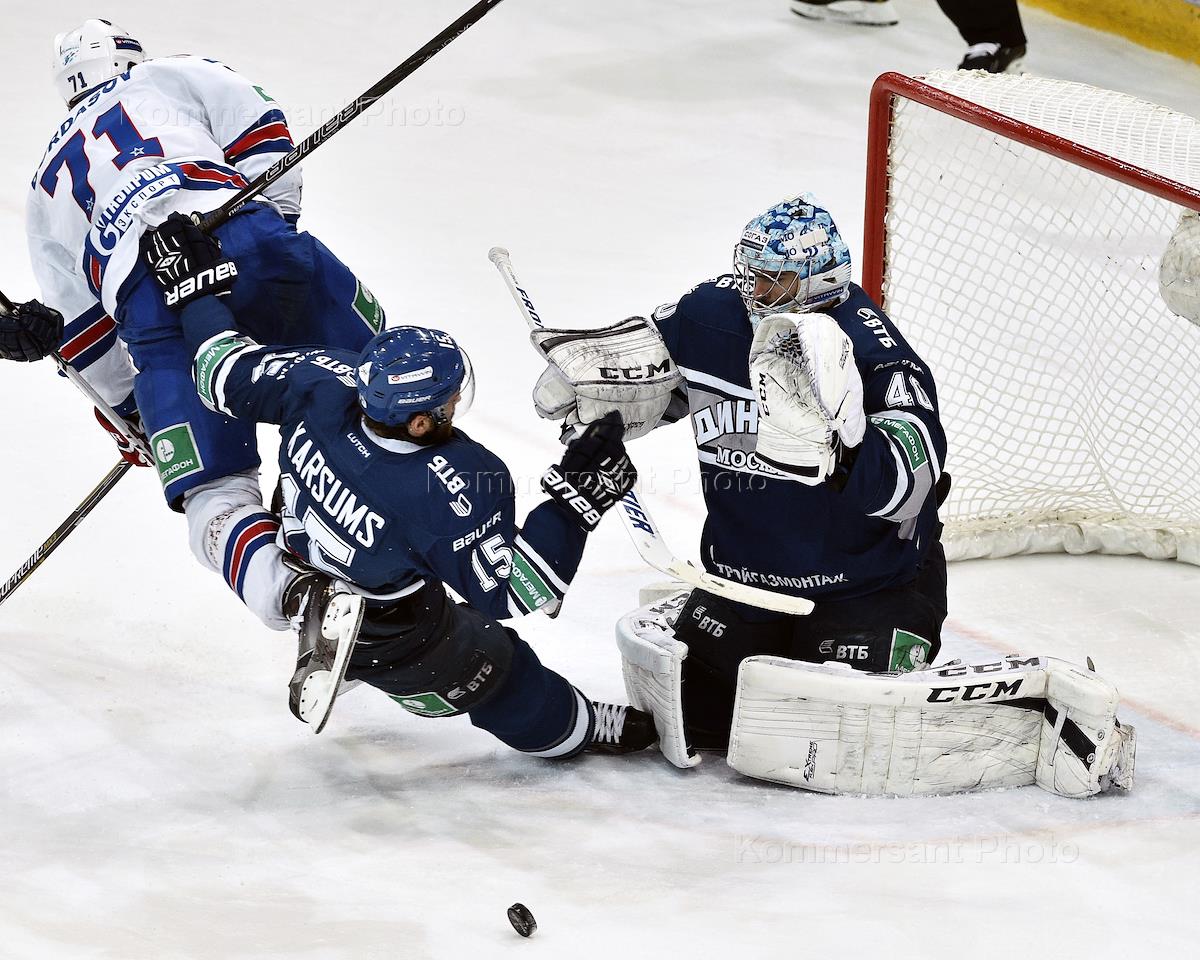 Континентальная хоккейная лига (КХЛ). Кубок Гагарина. Матч между командами "Динамо" (Москва) и СКА (Санкт-Петербург) на МСА «Лужники».