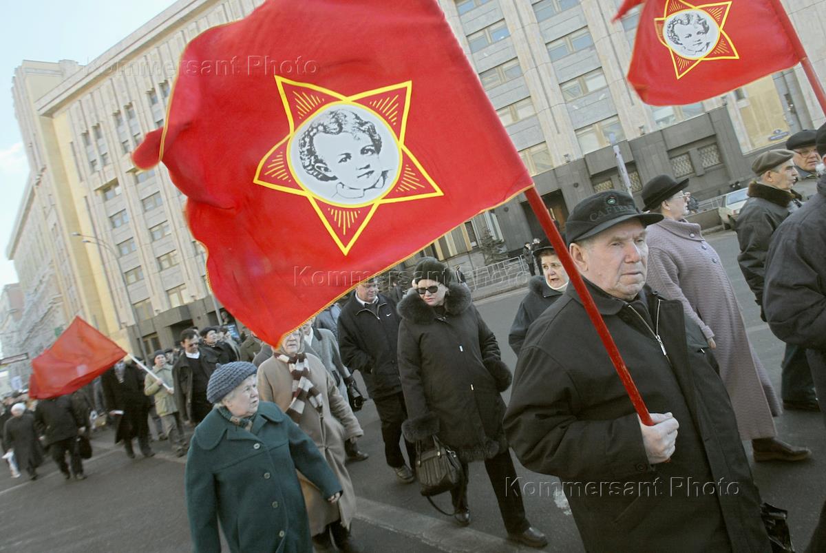 Communist rally staged in Lubyanskaya Square to denounce the government's economic policies.