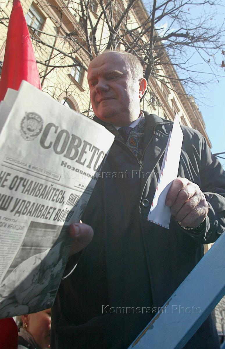 Leader of the Russian Communist party (KPRF) Gennady Zyuganov takes part in leftist rally staged to denounce the government economic and social policies.