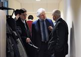 Президент Адвокатской палаты Москвы Генри Резник (в центре) и телеведущий Николай Сванидзе (справа) перед началом заседания "круглого стола" на тему "Возрождение интитута следственных судей в России: идеи и пути реализации". Заседание прошло в офисном центре "Троицкий".