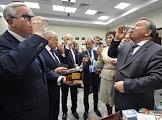 Председатель правления ОАО "Небанковская депозитно-кредитная организация "Агентство кредитных гарантий" Галина Изотова (слева) и президент Российского союза промышленников и предпринимателей (РСПП) Александр Шохин (в центре) во время презентации экономического и инвестиционного потенциала Алтайского края. Презентация прошла в офисе РСПП.