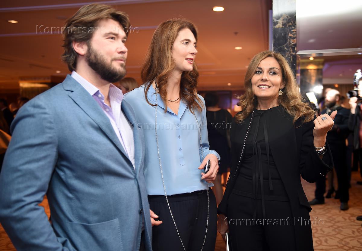 Слева направо: директор агентства ArsVitae Наталья Боброва, продюсер Михаил Друян и вице-президент по операционной деятельности и развитию компании Oetker Collection Филипп Пер на церемонии вручения премии в области элитного туризма "Выбор читателей Conde Nast Traveller" в зале "Кристалл Lotte Hotel Moscow".