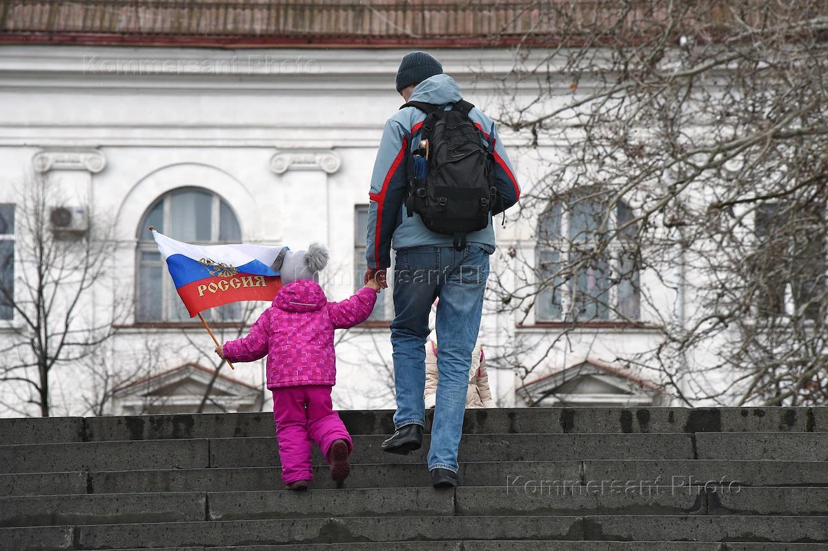 Празднование годовщины воссоединения Крыма с Россией. Праздничные гуляния в Севастополе. Памятник.