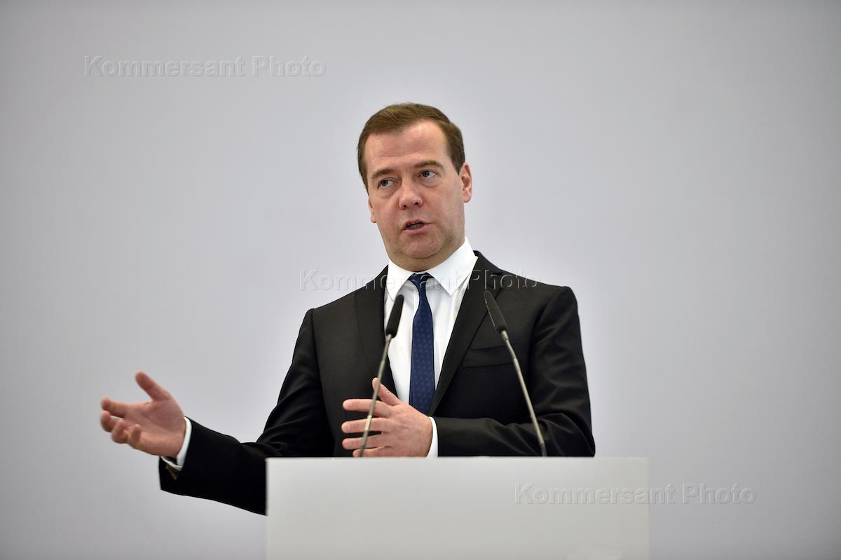 Председатель правительства России Дмитрий Медведев во время выступления на Всероссийском форуме центров государственных и муниципальных услуг в Доме правительства Московской области в Красногорске.