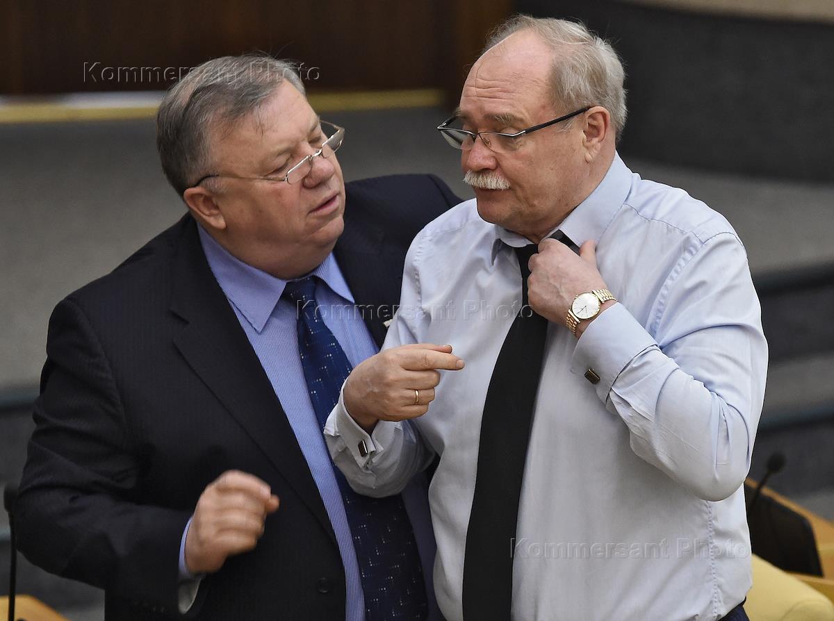 Первый заместитель председателя Комитета Государственной думы (ГД) России по охране здоровья Николай Герасименко (слева) и заместитель председателя ГД России Владимир Васильев (справа) на пленарном заседании Госдумы России.