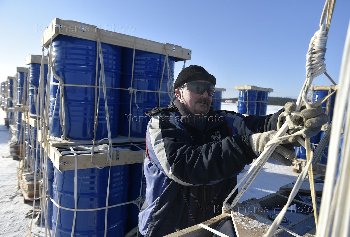 Участник комплексной высокоширотной арктической экспедиция на полярную станцию Купол на Северном полюсе во время работ доставки горючего.