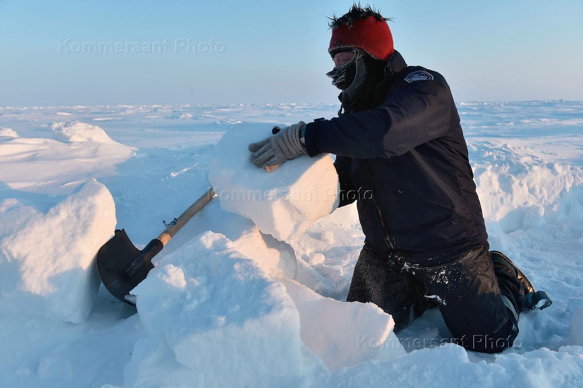 Preparation for complex high-latitude Arctic expedition at polar station Kupol. Participants of the expidition in airport Murmansk.