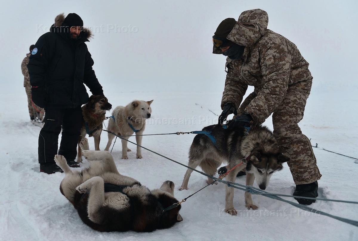 Preparation for complex high-latitude Arctic expedition at polar station Kupol. Participants of the expidition in airport Murmansk.