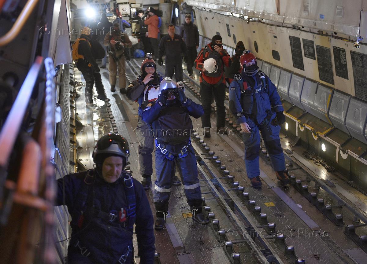 Preparation for complex high-latitude Arctic expedition at polar station Kupol. Participants of the expidition in airport Murmansk.