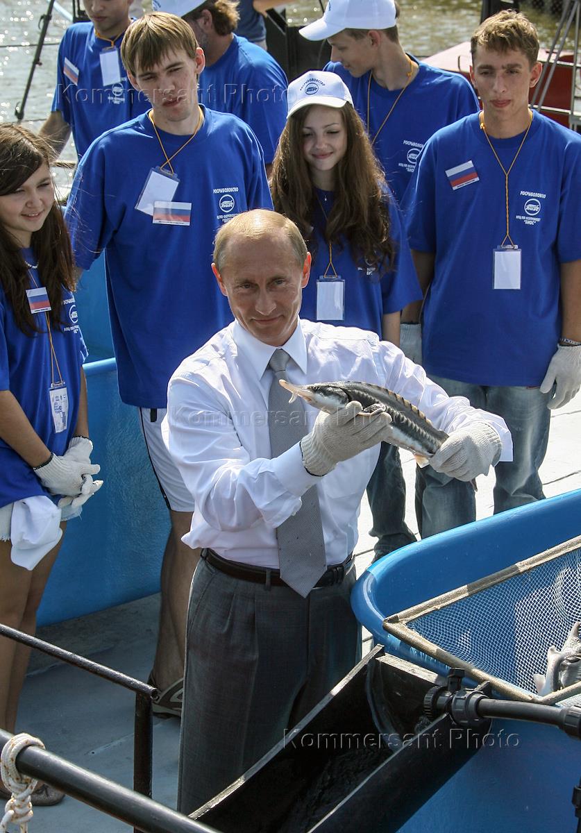 Президент России Владимир Путин во время посещения научно-производственного Центра по осетроводству "БИОС".