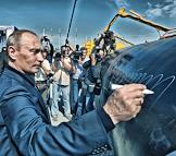 Рабочая поездка председателя правительства России Владимира Путина в Уральский федеральный округ. Председатель правительства России Владимир Путин оставил свой автограф на первом листе стали, выпущенном на первой очереди комплекса холодной прокатки стали нового прокатного стана "2000" ОАО "Магнитогорский металлургический комбинат".