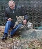 Президент России Владимир Путин во время посещения Центра разведения и реабилитации переднеазиатского леопарда. Леопард был избран талисманом предстоящих Олимпийских игр в Сочи.