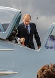 Председатель правительства России Владимир Путин на аэродроме имени М.М.Громова в Жуковском во время испытаний российского истребителя пятого поколения Т-50