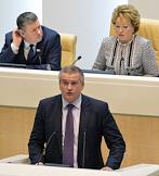 Председатель Совета министров Республики Крым Сергей Аксенов (в центре) на заседании Совета Федерации России.