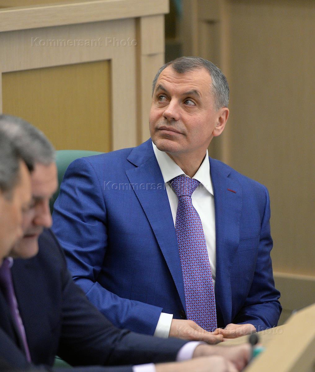 Председатель Совета министров Республики Крым Сергей Аксенов на заседании Совета Федерации России.