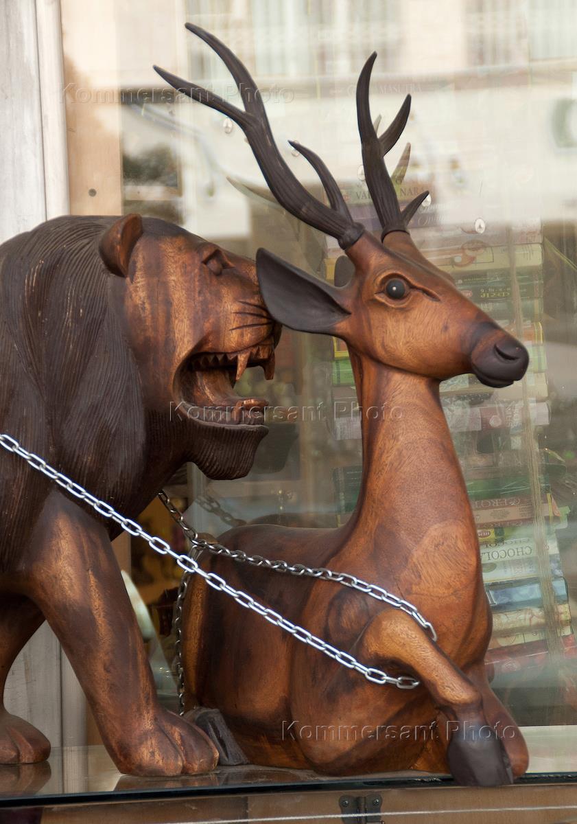 Жанровая фотография. Виды Тегерана. Деревянные фигуры животных.
