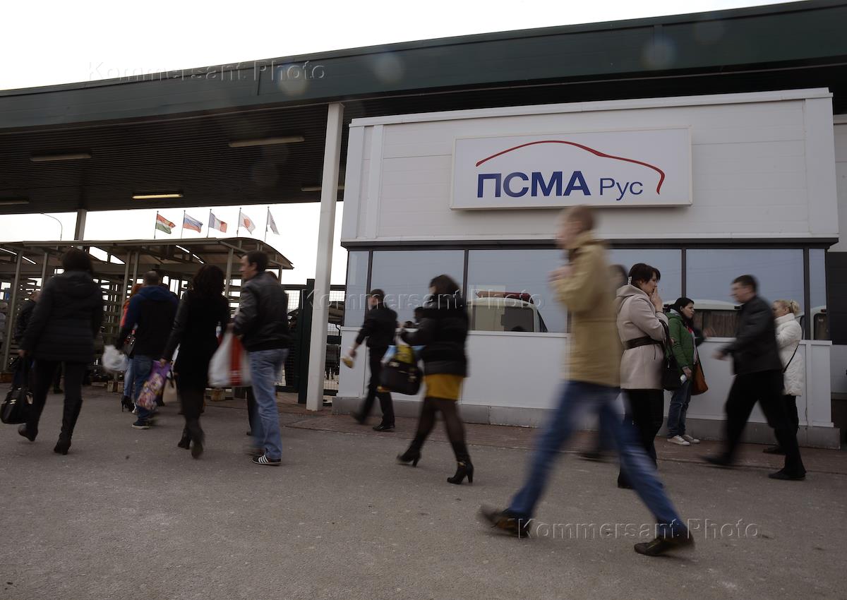 Жанровая фотография. Рабочие на проходной Калужского завода "ПСМА Рус".