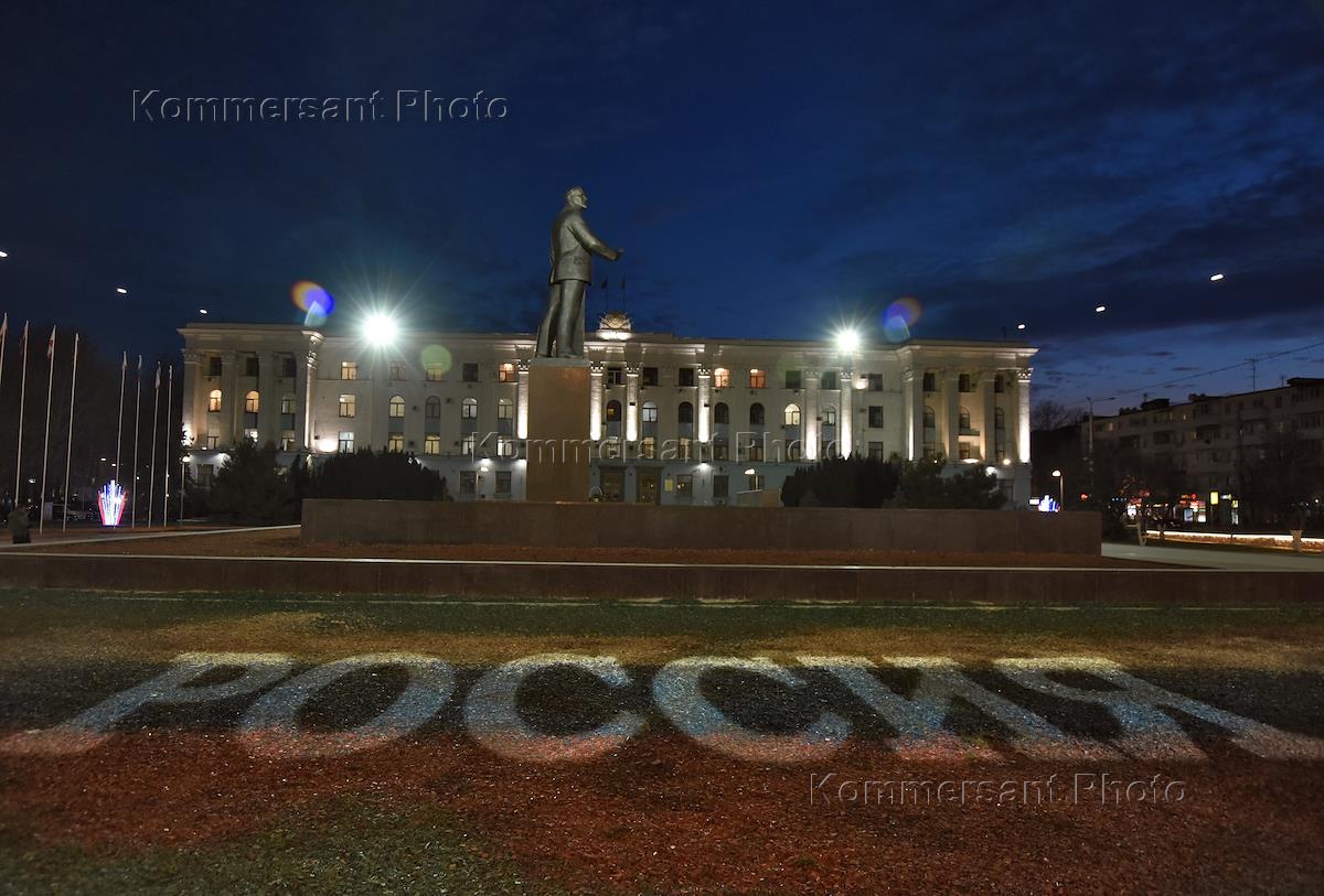 Виды вечернего Симферополя. Памятник Владимиру Ленину на площади Ленина.