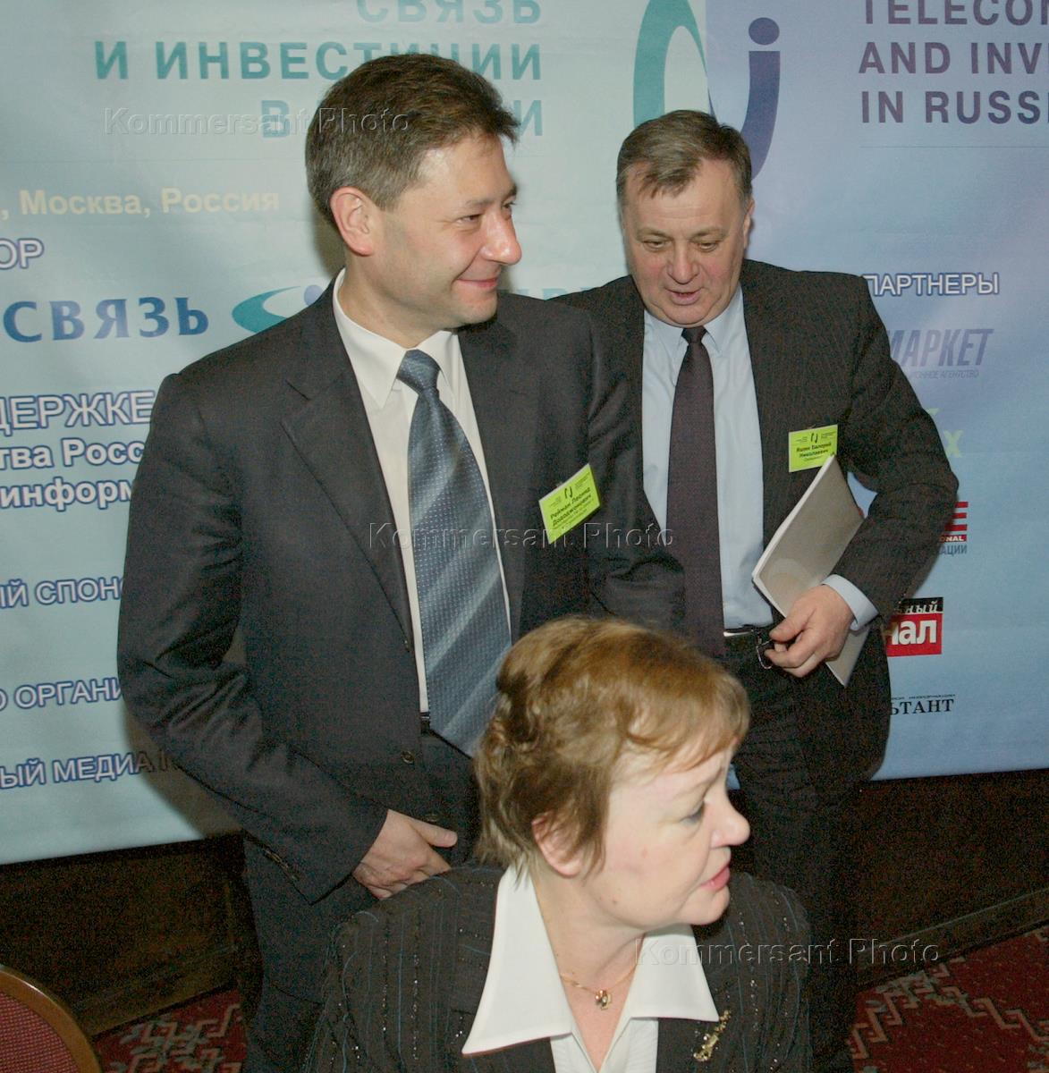 Президент "Связьинвест" Валерий Яшин (справа) и министр России по связи и информатизации Леонид Рейман (в центре) во время проведения Международной конференции "Связь и инвестиции в России". Конференция состоялась в "Марриотт Гранд Отеле".