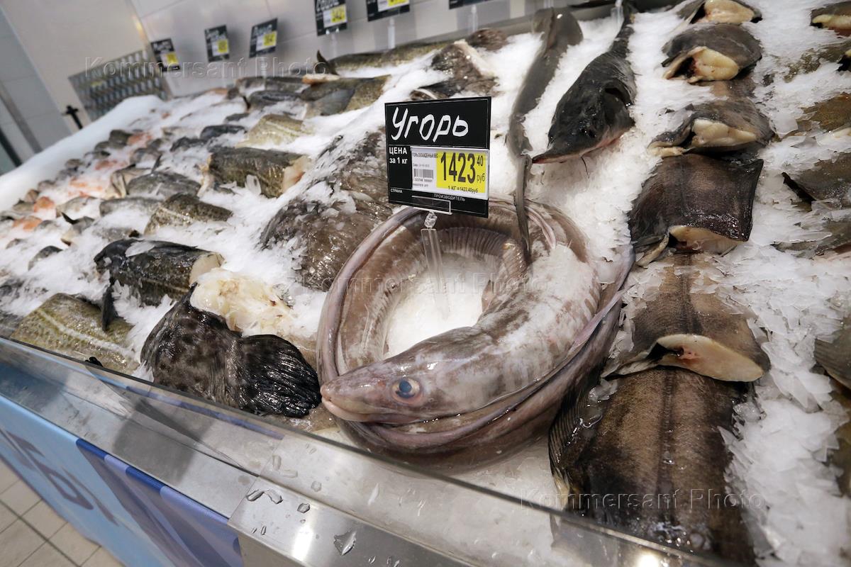 Жанровая фотография. Церемония открытия магазина сети "Ашан" в Перми. Торговый зал. Рыба и морепродукты.