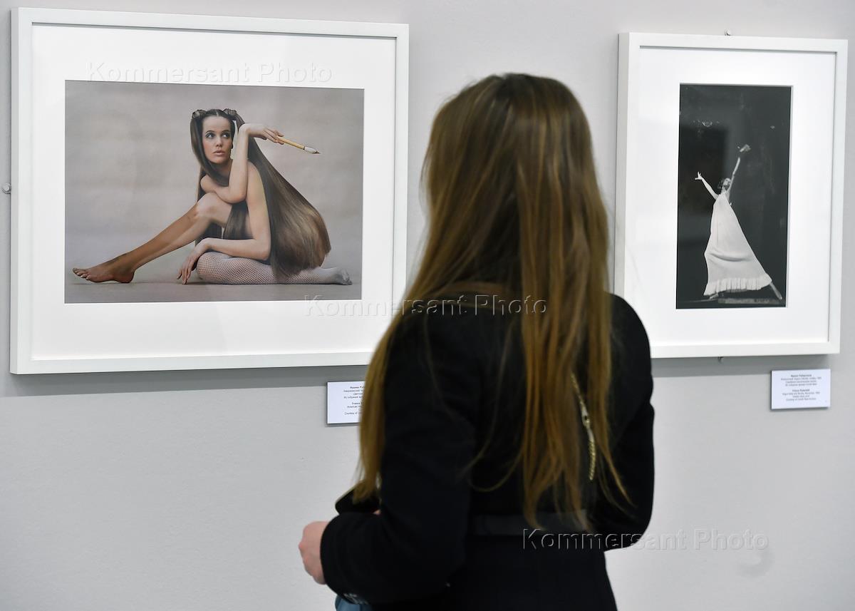 Посетительница на церемонии открытия выставки "Как рождается мода: 100 лет фотографии из архива Conde Nast" в рамках IX Московской международной биеннале "Мода и стиль в фотографиях 2015". Выставка прошла в в Мультимедиа Арт Музее.