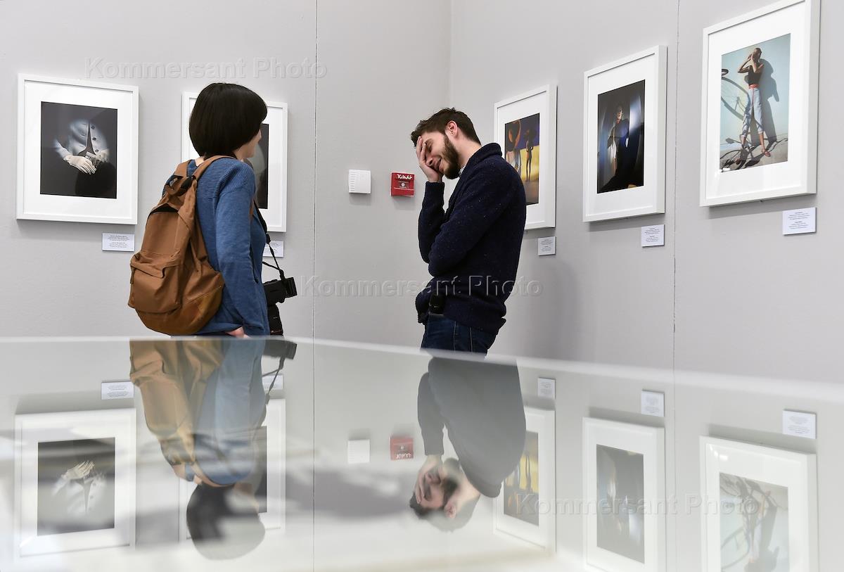 Посетитель на церемонии открытия выставки "Как рождается мода: 100 лет фотографии из архива Conde Nast" в рамках IX Московской международной биеннале "Мода и стиль в фотографиях 2015". Выставка прошла в в Мультимедиа Арт Музее.