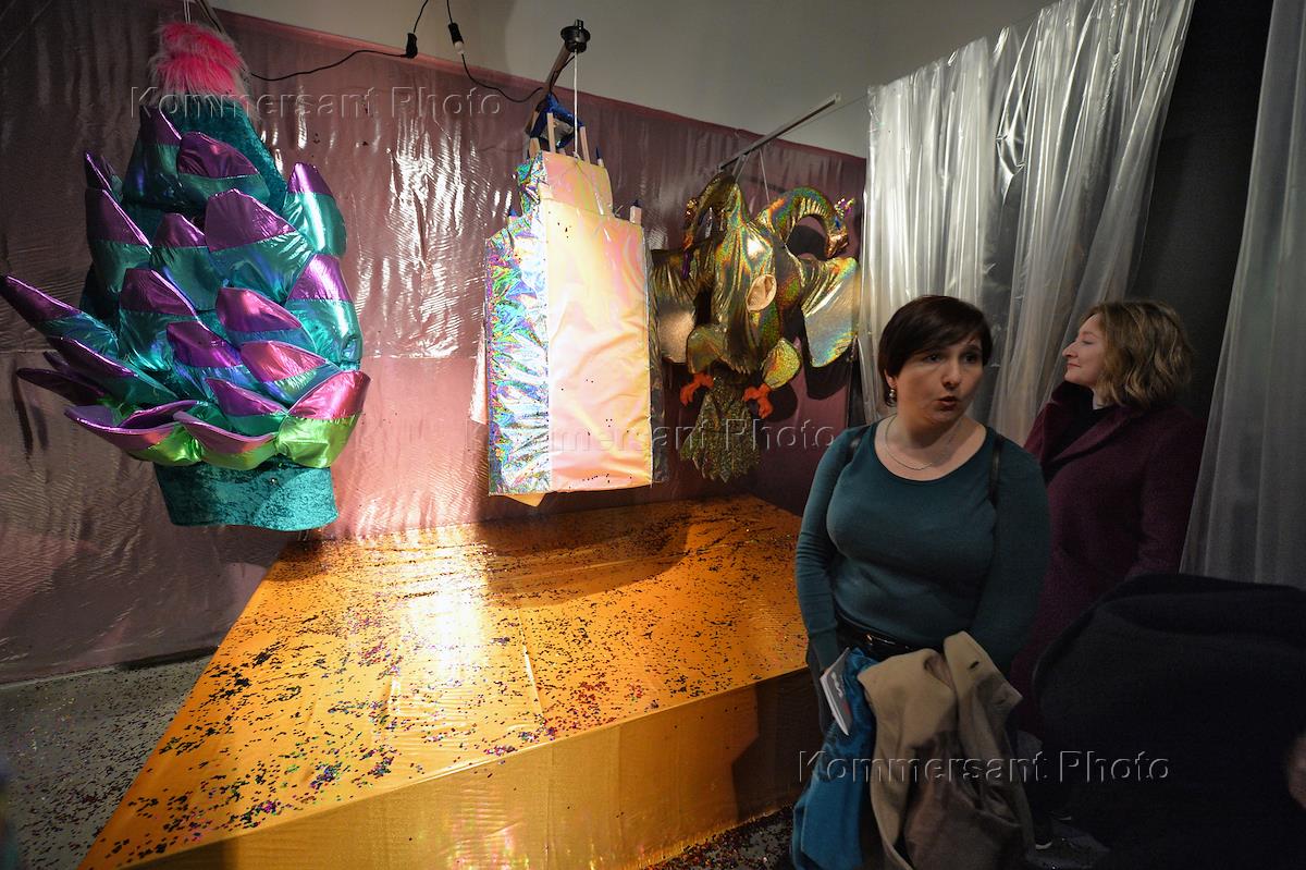 Посетители на выставке номинатнов на премию "Инновация" в Государственном центре современного искусства (ГЦСИ).