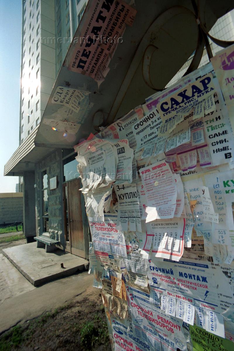 State Duma deputy houses in Mitino. An advertisment board in front of a house.